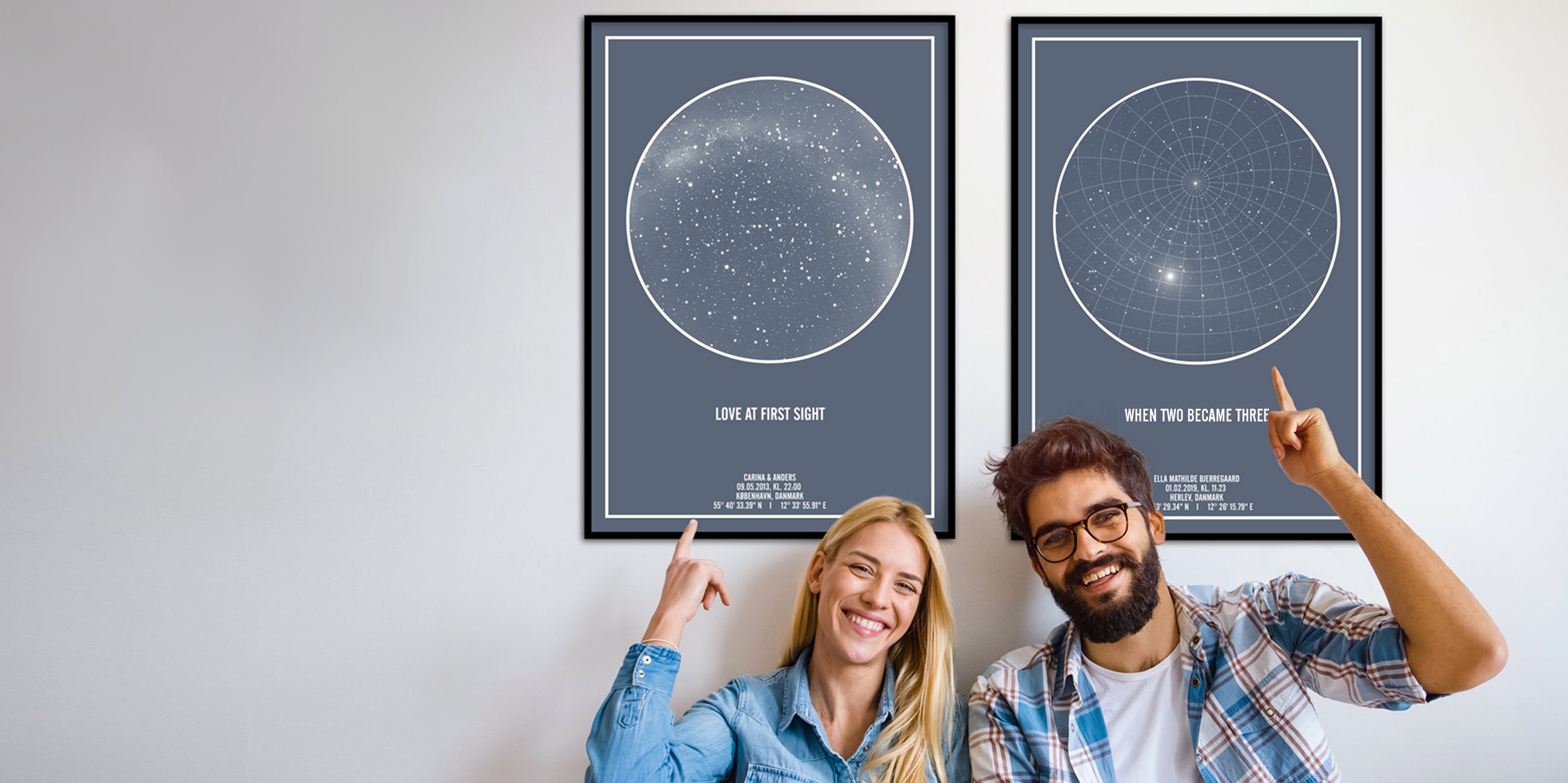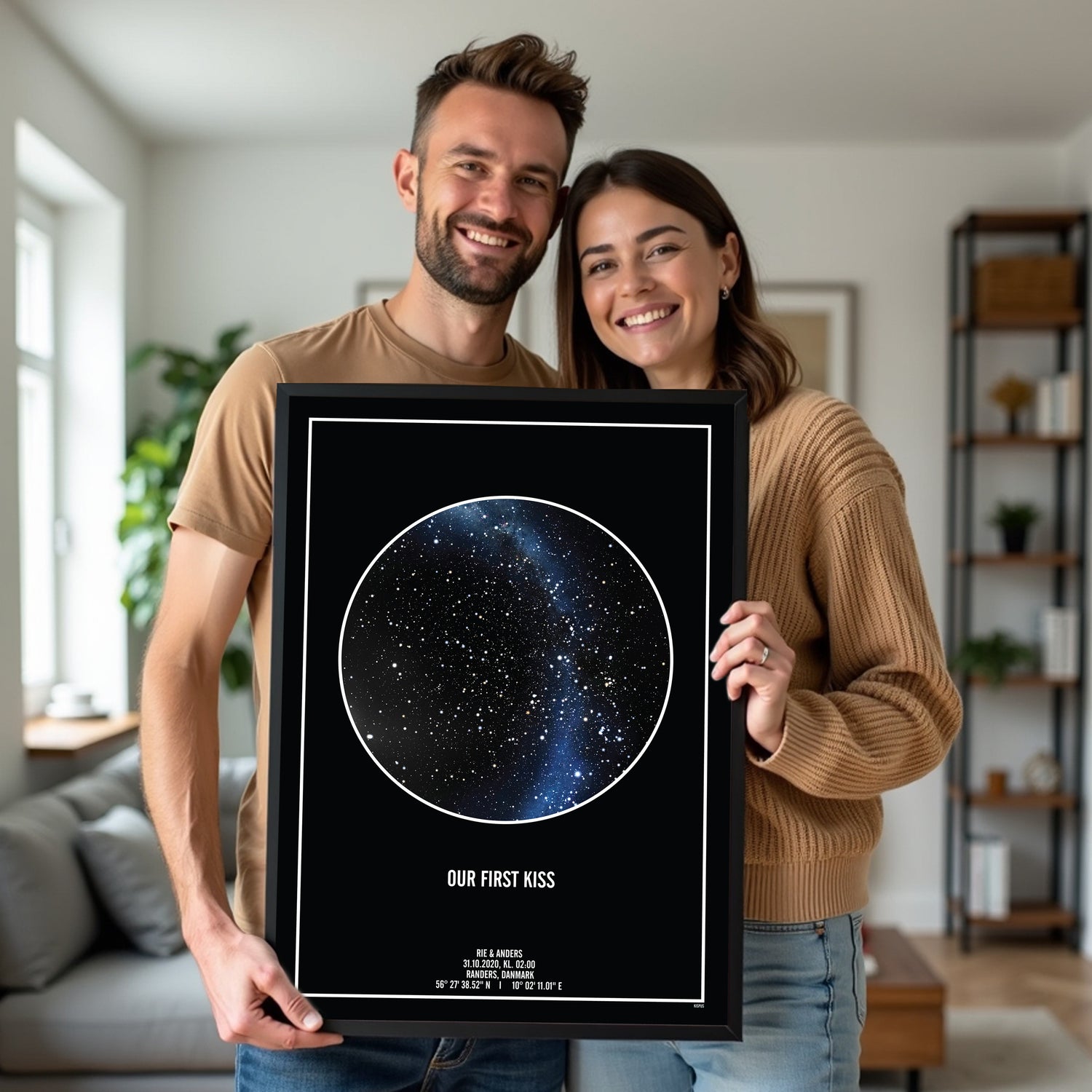 Forevig et særligt øjeblik med en plakat, der viser præcis, hvordan stjernerne stod, da livet ændrede sig.