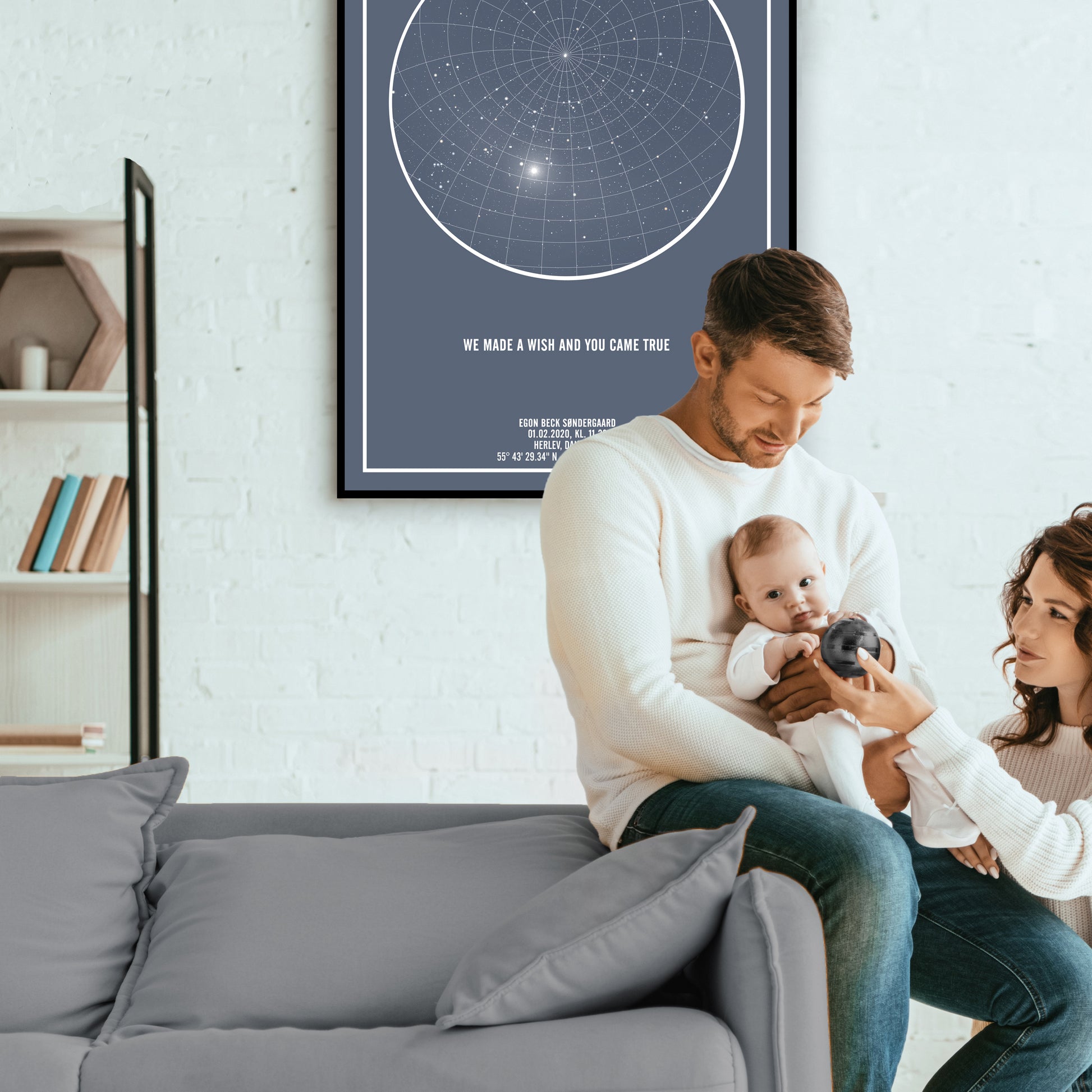 Forevig et særligt øjeblik med en plakat, der viser præcis, hvordan stjernerne stod, da livet ændrede sig.