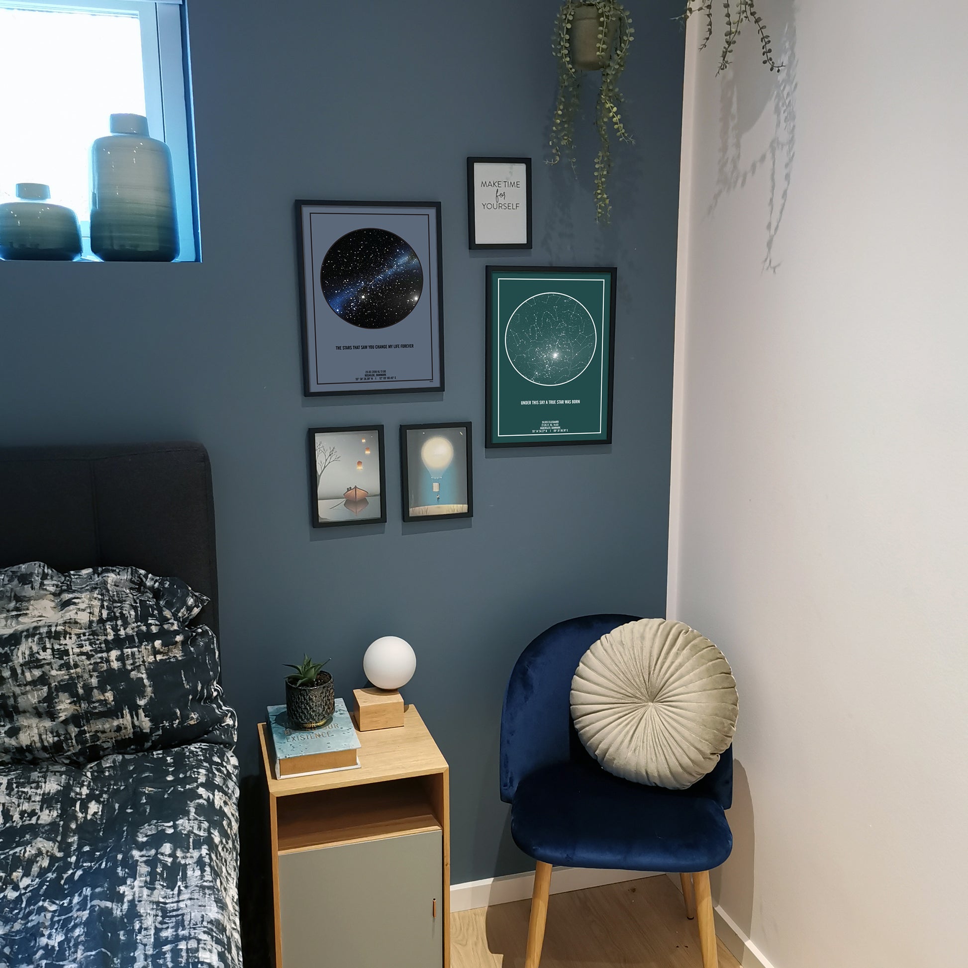 Uanset om din stjernehimmel markerer kærlighed, et bryllup, en fødsel eller et andet uforglemmeligt øjeblik, er den en smuk og personlig måde at skabe betydningsfuld indretning i dit hjem.