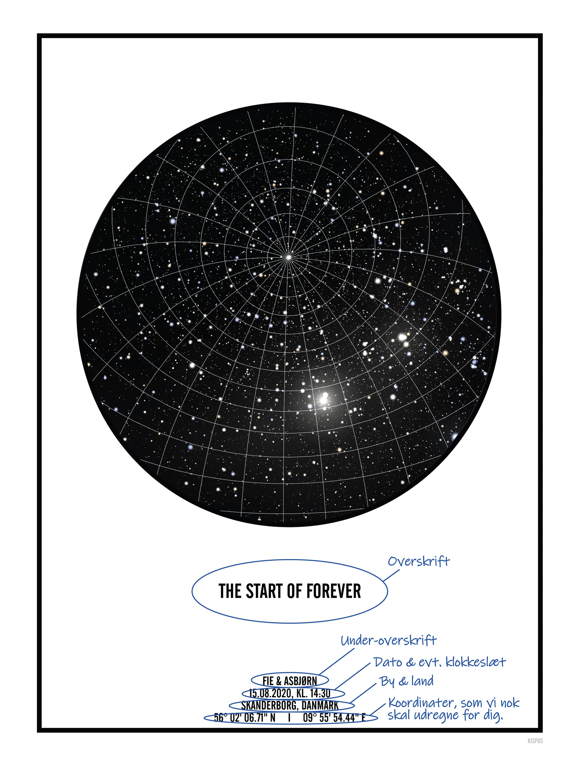 En stjernehimmel plakat er et helt unikt og præcist billede af, hvordan stjernerne stod på himlen netop på netop dét tidspunkt, der har en helt særlig betydning for dig.
